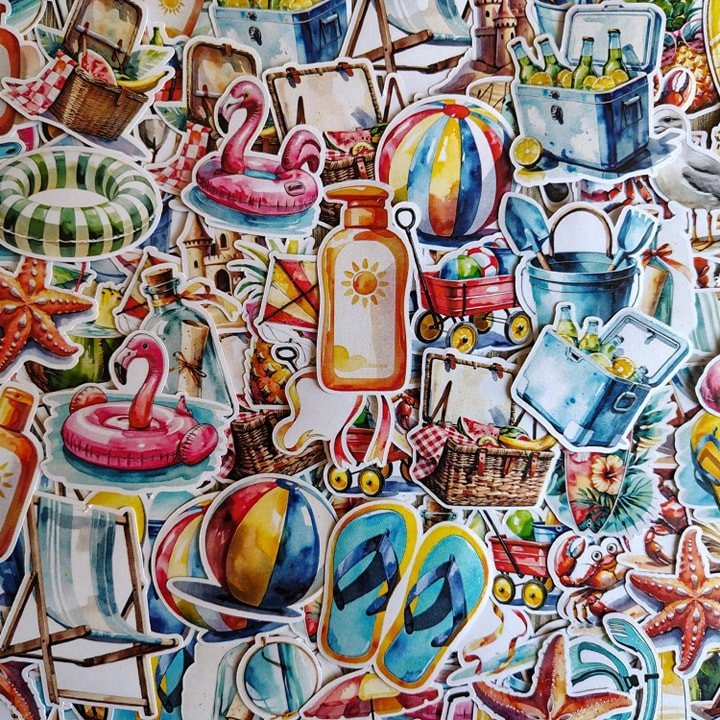 مجموعة ستيكرز يوم علي الشاطئ ، أشكال الصيف المبهجه بألوان قويه وتفاصيل ممتعه 🌊