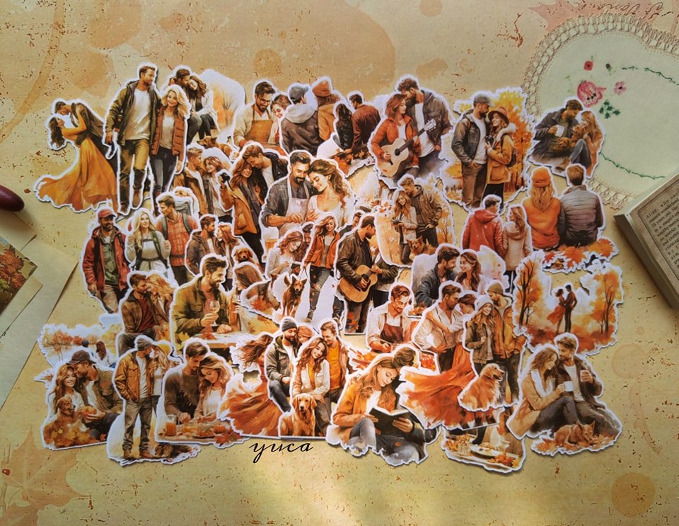 مجموعة استيكرز couples بثيم خريفي دافئ.