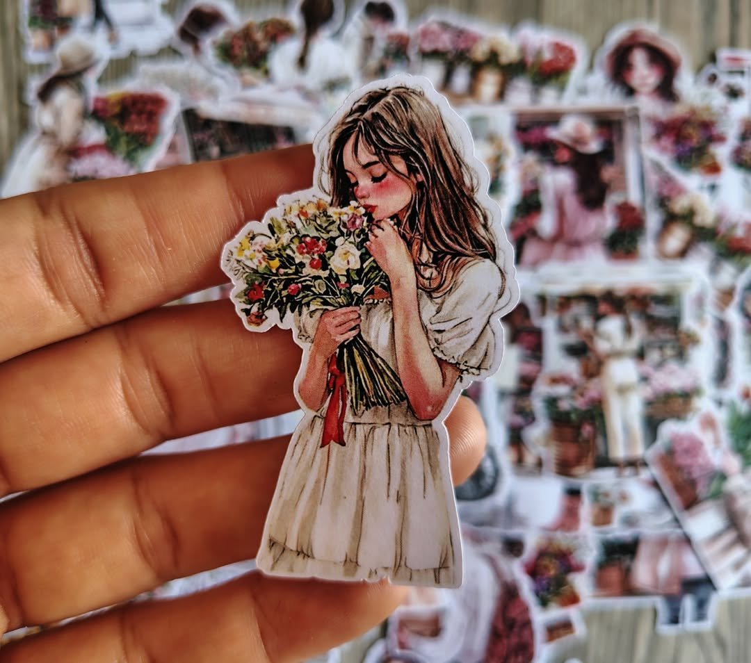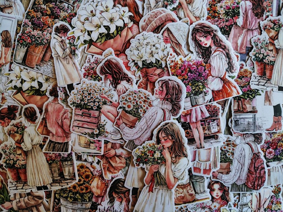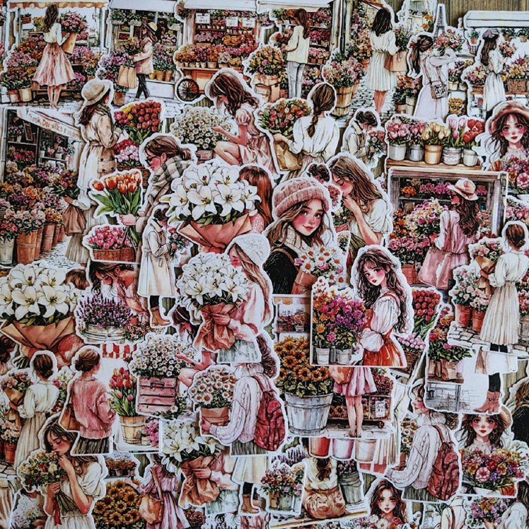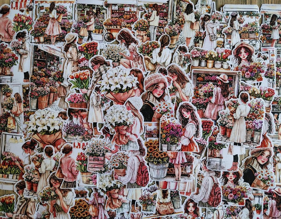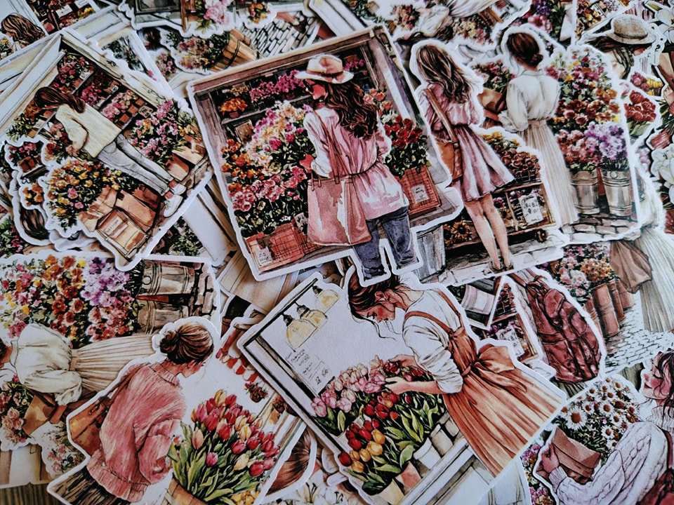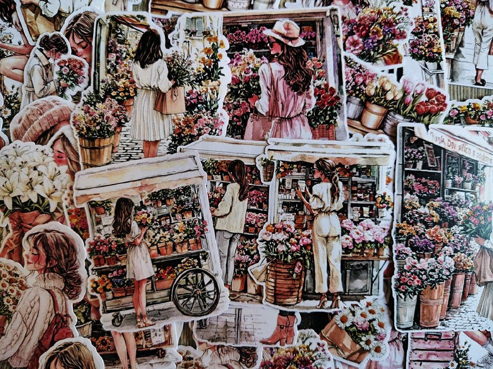 مجموعه ستيكرز بنات في محلات الزهور ، أشكال رقيقه بتفاصيل جميله جدا