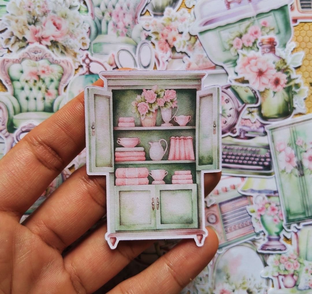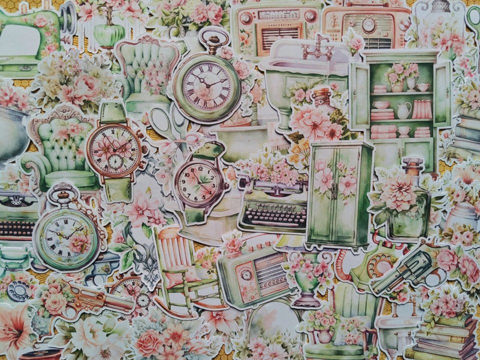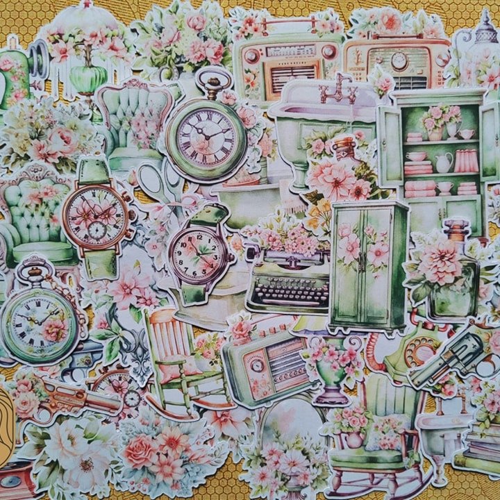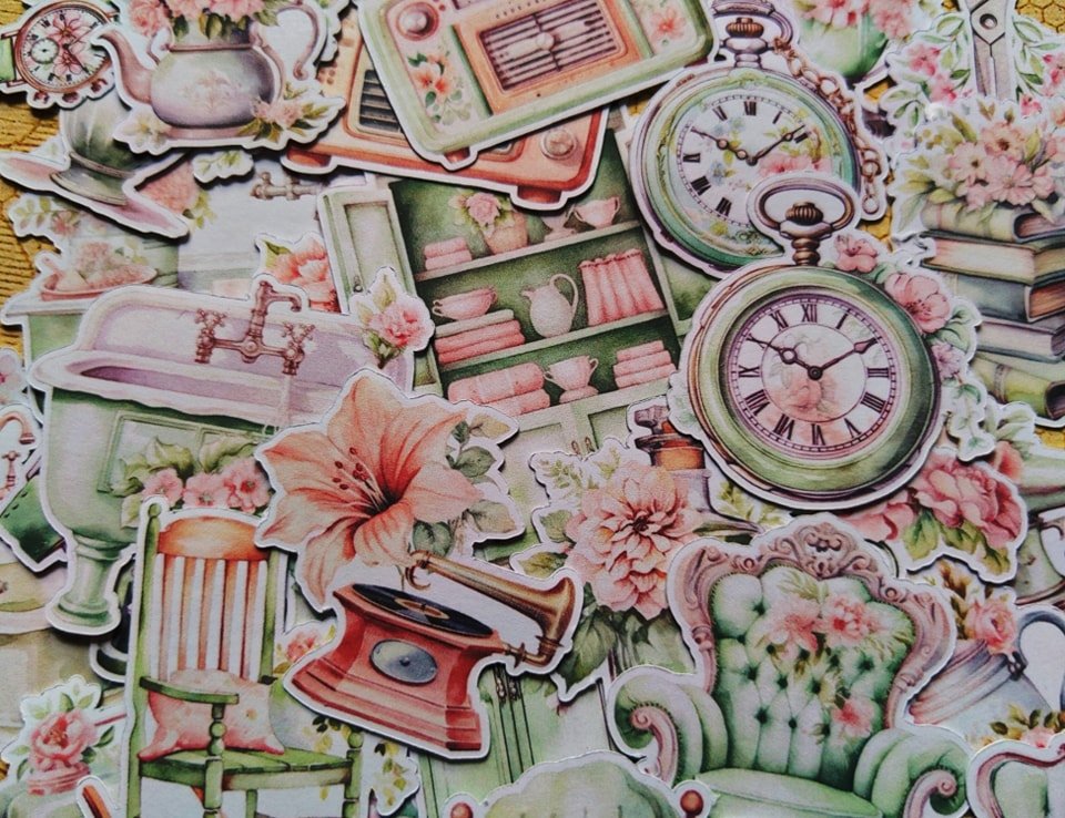 ستيكرز انتيكات باللون الأخضر بطابع عتيق وأشكال مميزه ٥٠ قطعه مختلفه في الباك أحجام كبيره ووسط