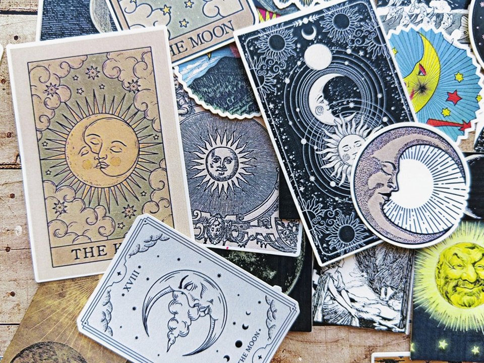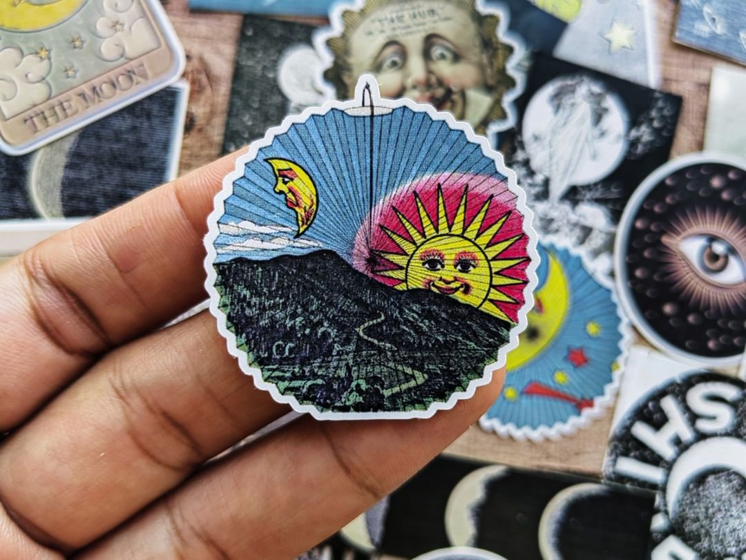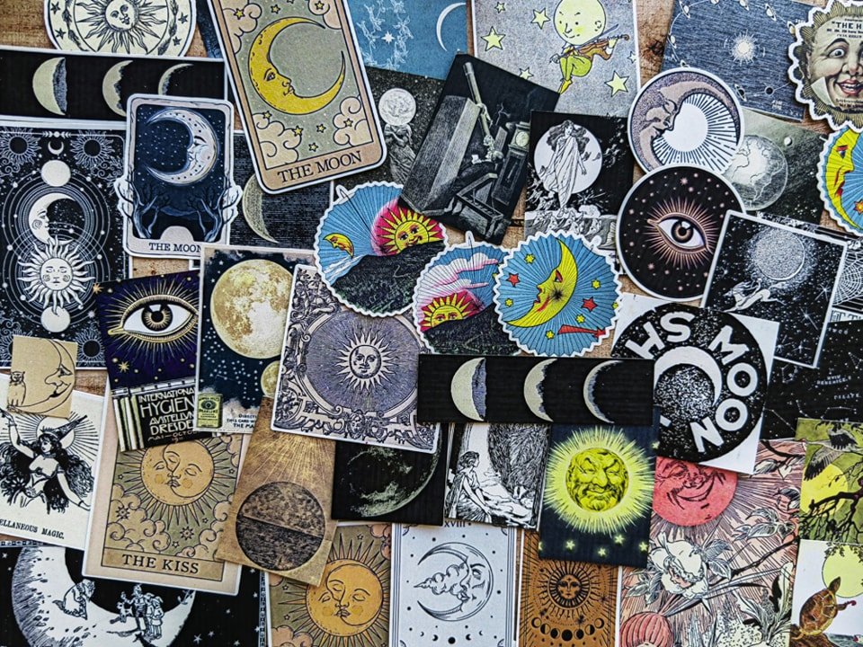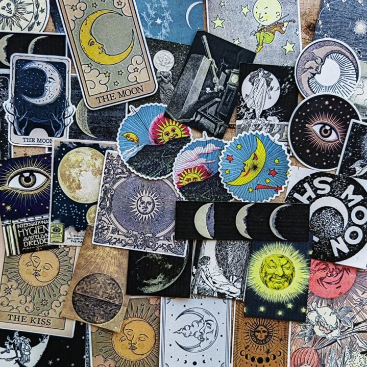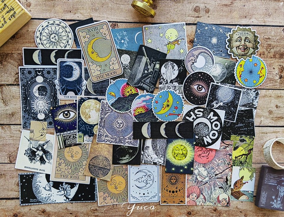 مجموعة استيكرز قمر بمود داكن عتيق الباك ٤٥ قطعه مختلفه أحجام كبيره ووسط