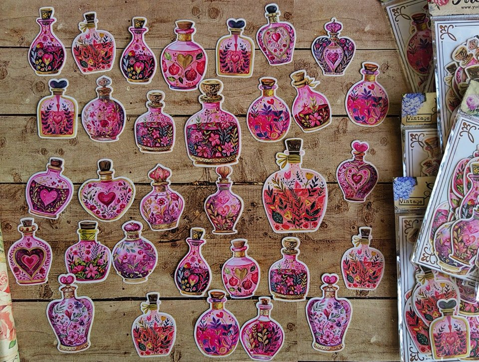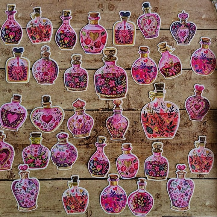 مجموعة استيكرز زجاجات لطيفه ٣٢ قطعه