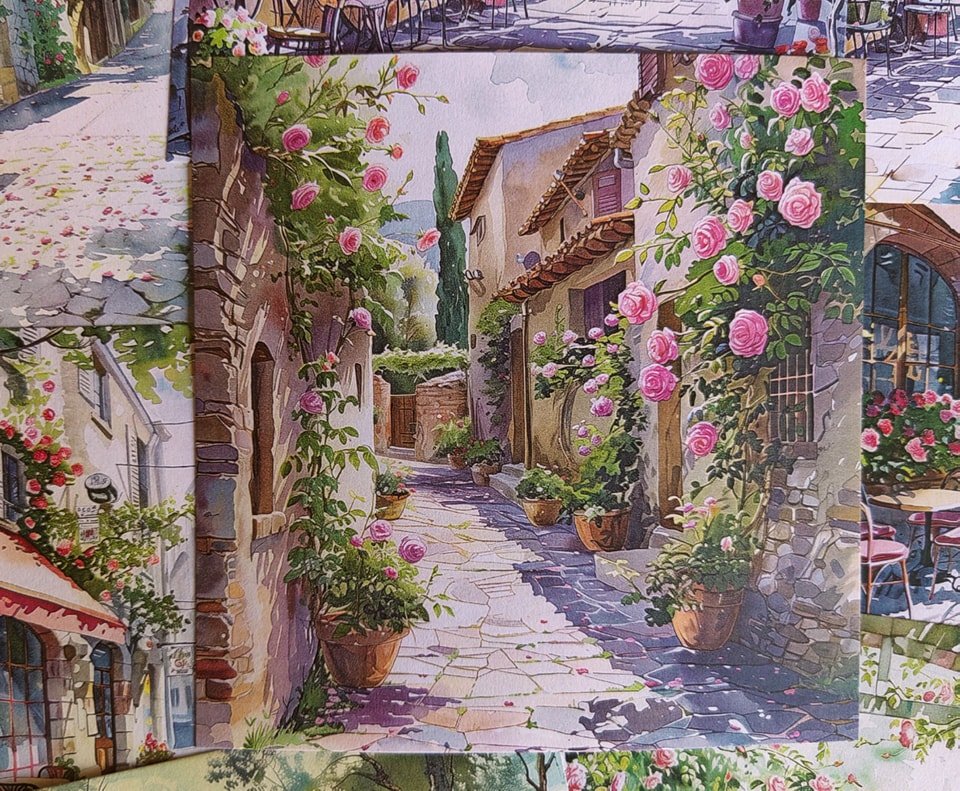 مجموعة ورقيات بثيم حديقة ورد رقيق وناعم جدا والوانه هاديه بتفاصيل مدهشه