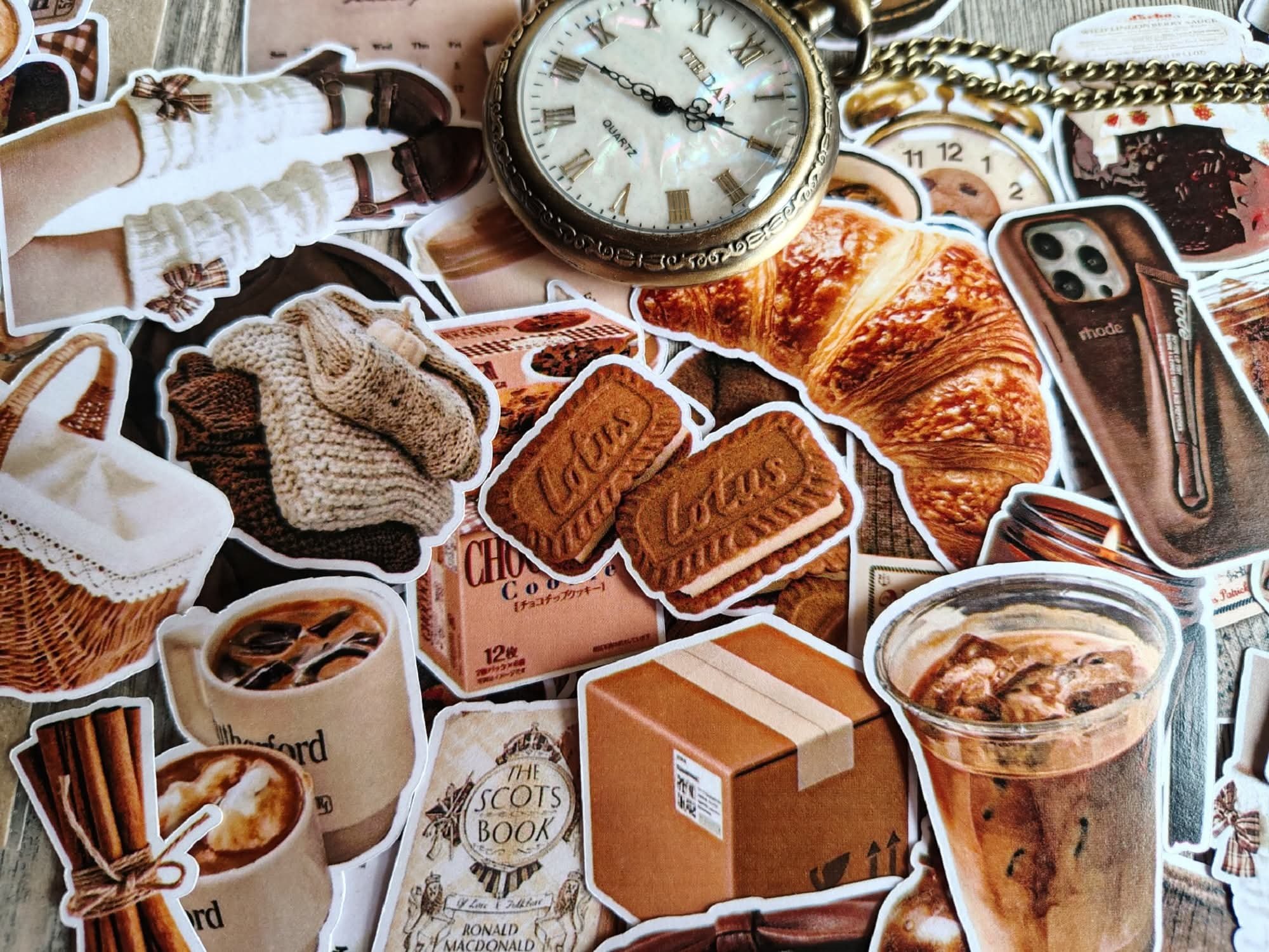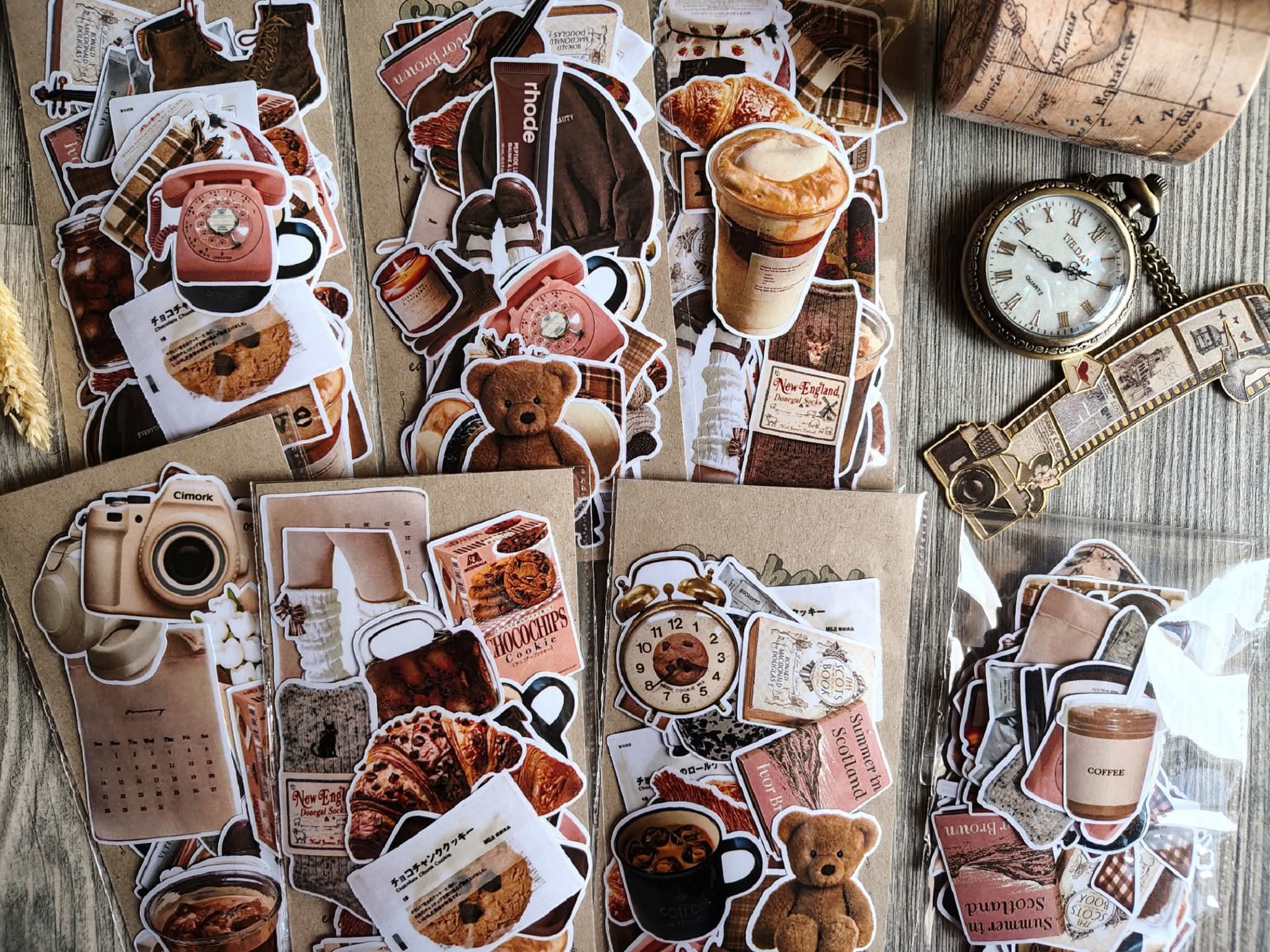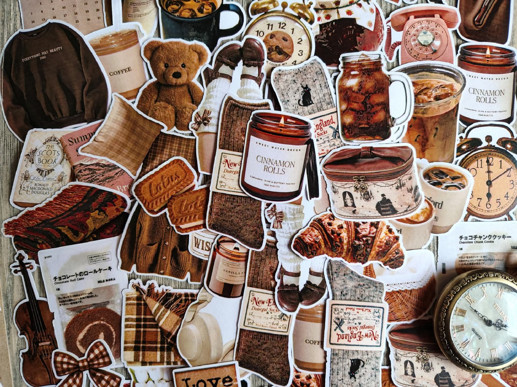 مجموعه أستيكرز بالالوان البنيه بتفاصيل شتويه ٥١ قطعه