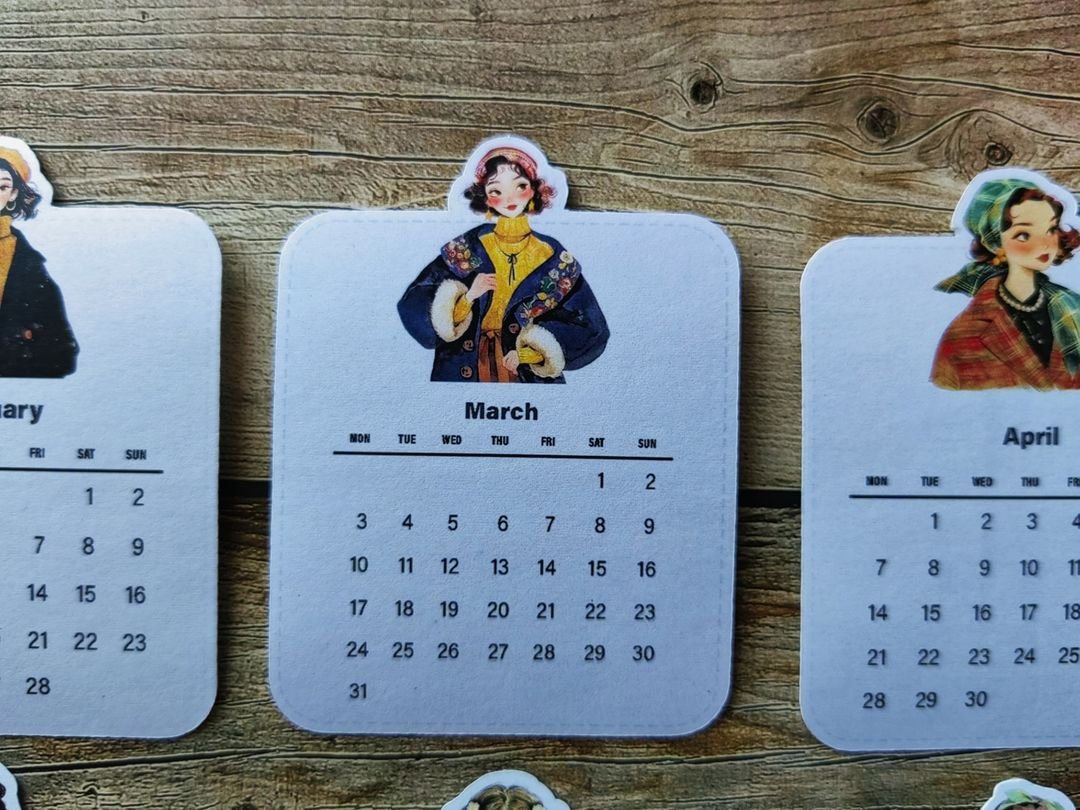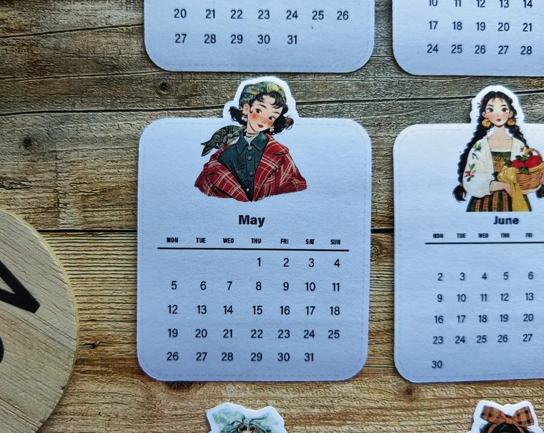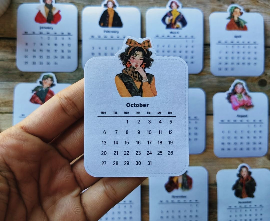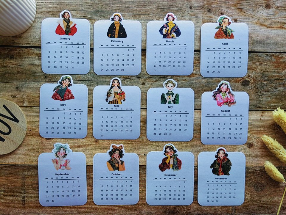 ستيكي كاليندر ١٢ شهر بثيم جيرلي بملابس مناسبه لكل فصل