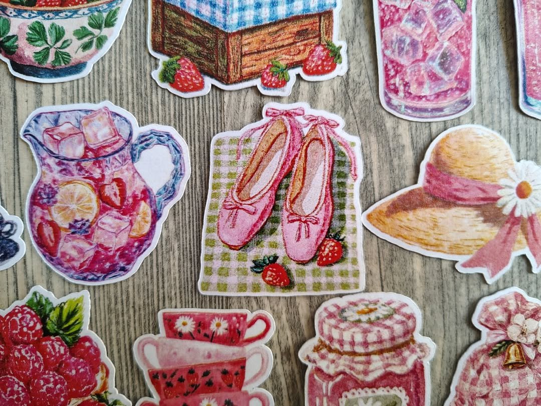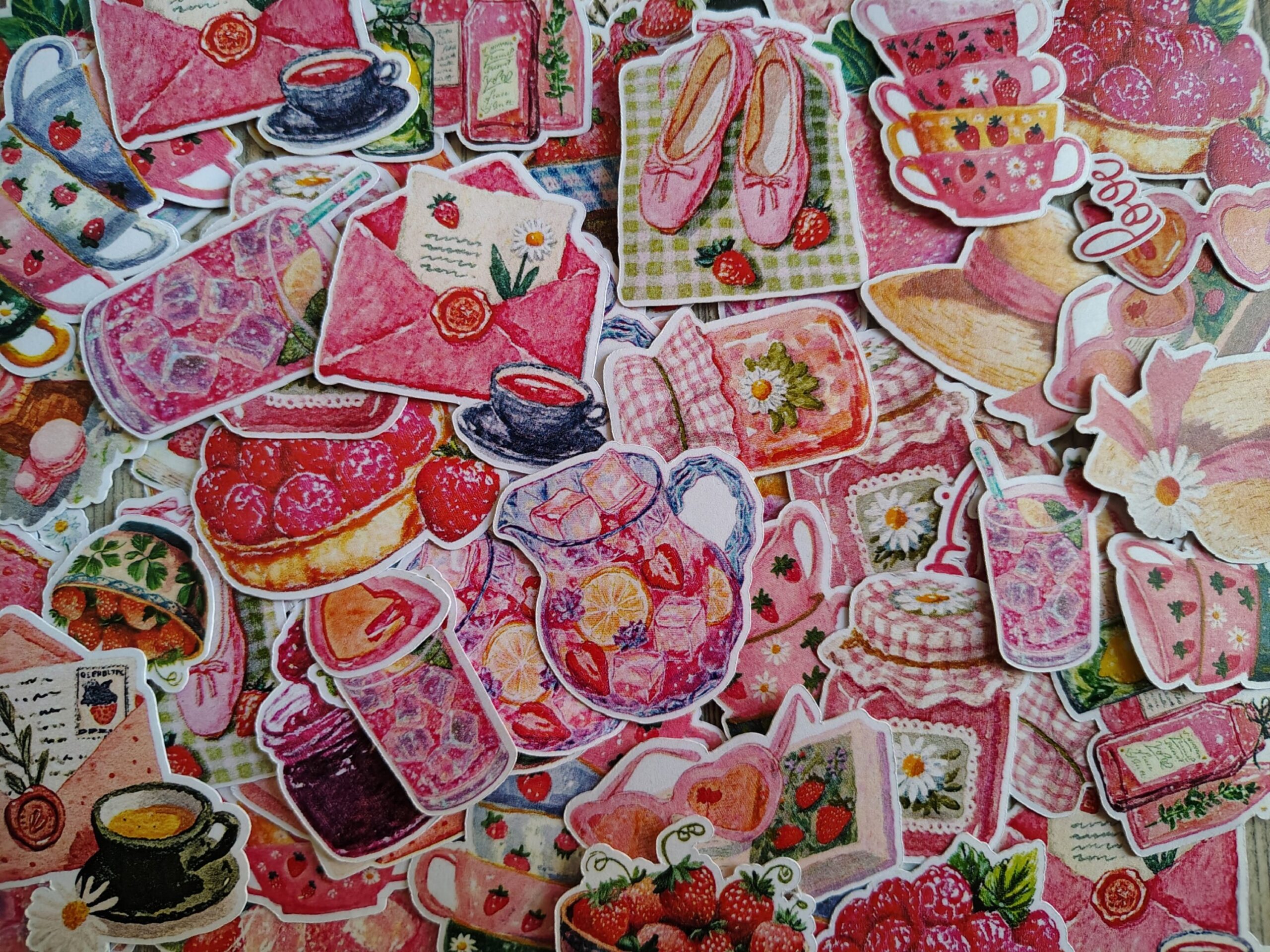 مجموعه أستيكرز منوعه بثيم الفراوله بأشكال رقيقه ، ستايل الوان شمعيه