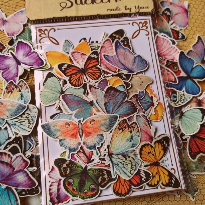 ستيكر فراشات بطابع عتيق حجم صغير للبوك مارك والجرابات و الجورنالز الصغيره