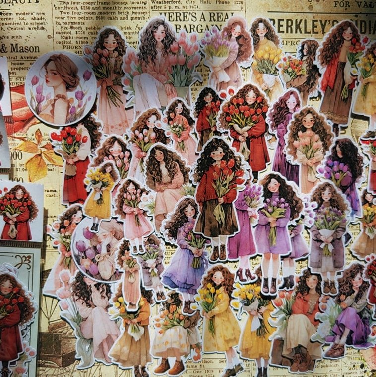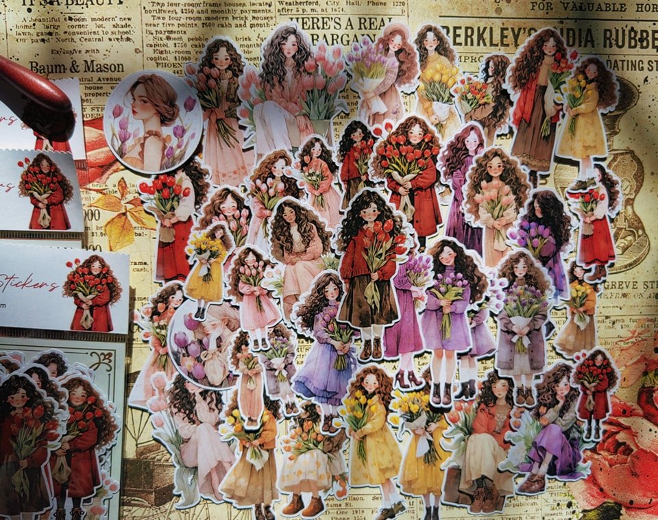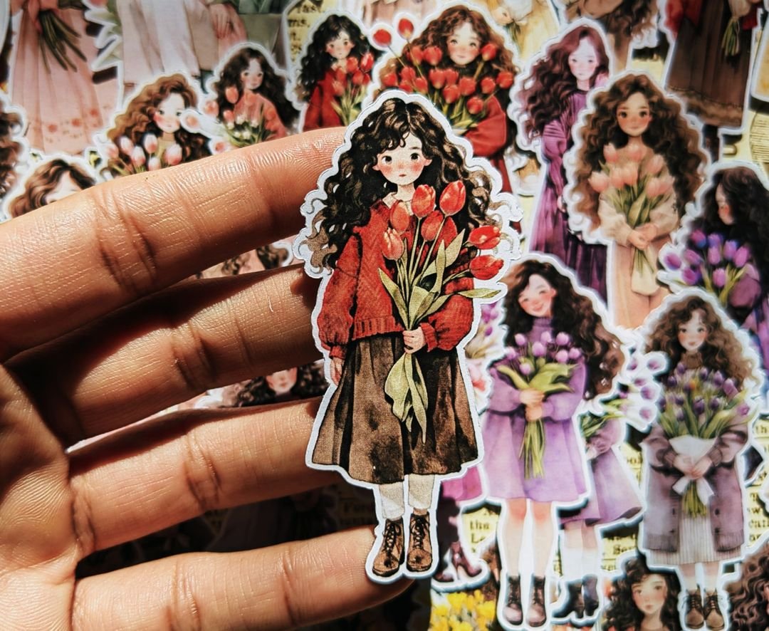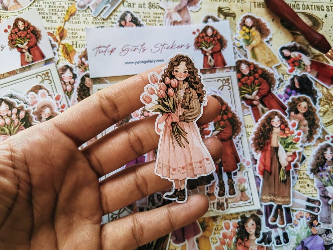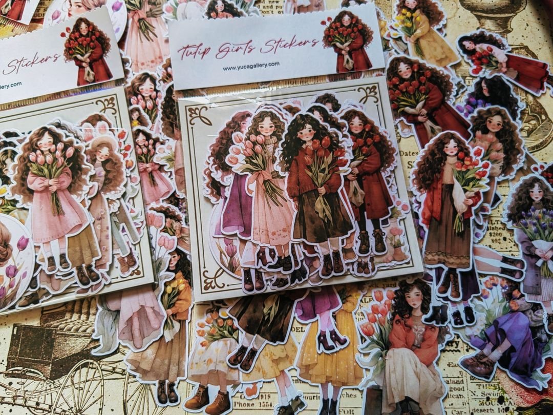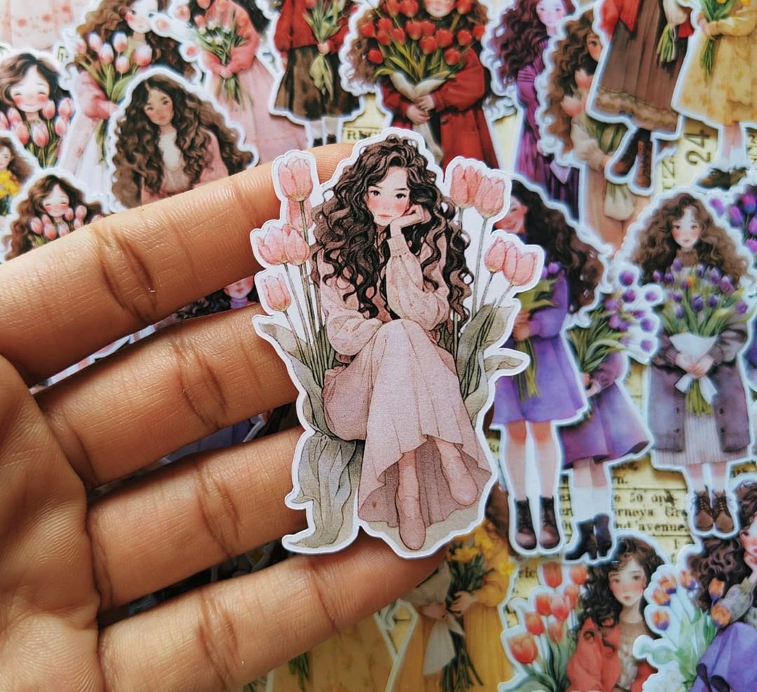 ستيكرز بنات مع توليب بأشكال لطيفه جدا وألوان رائعه