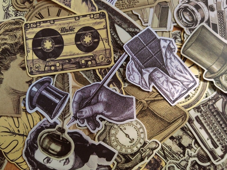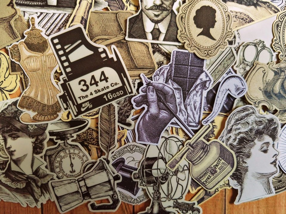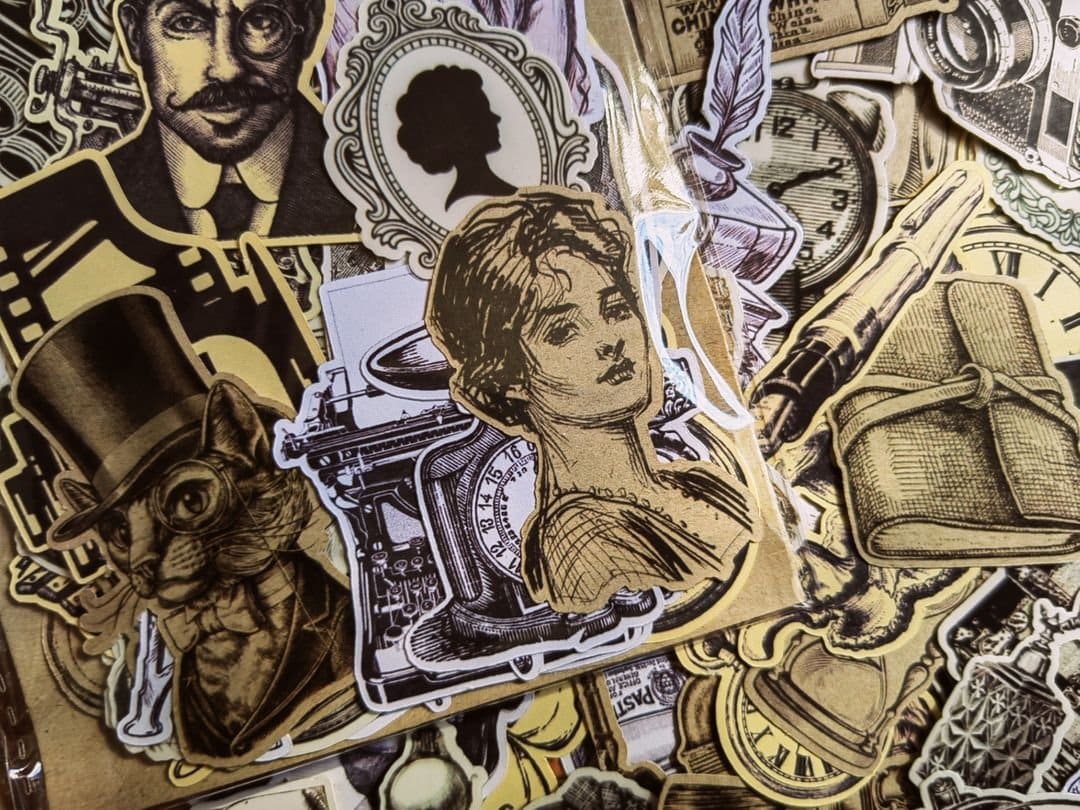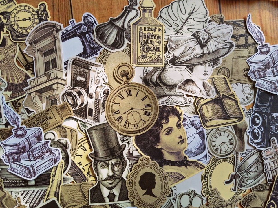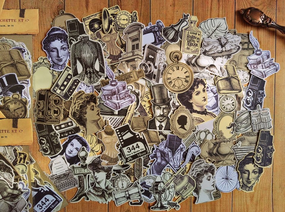 كوليكشن ضخم من الداي كاتس والاستيكرز بطابع عتيق، خامات مختلفه (استيكرز شفاف، ستيكرز ماط، ورق كرافت وورق كريمي)
