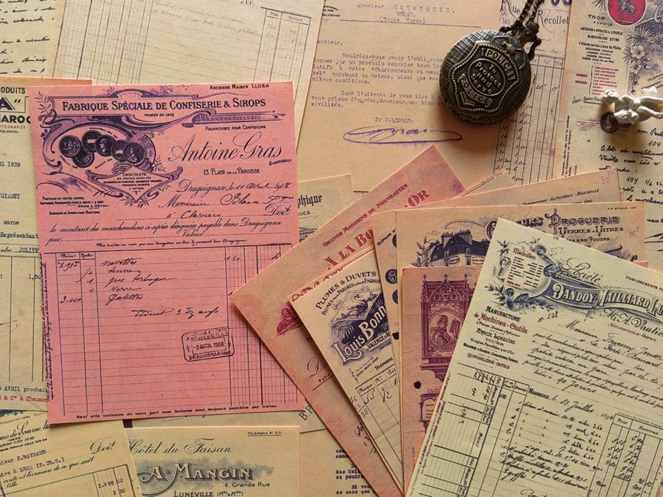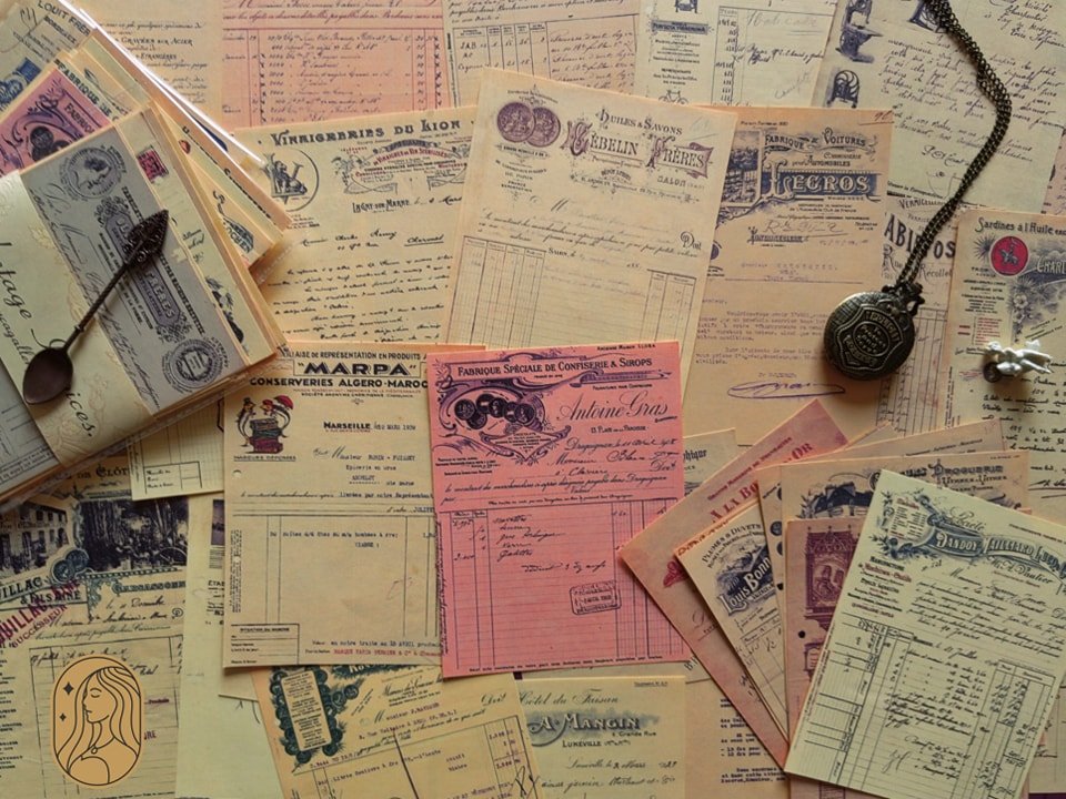 باك فواتير عتيقه حجمها كبير a5 تقريبا ، ٢٠ فاتوره مختلفه في الباك ورق تقيل ١٢٠جم كريمي
