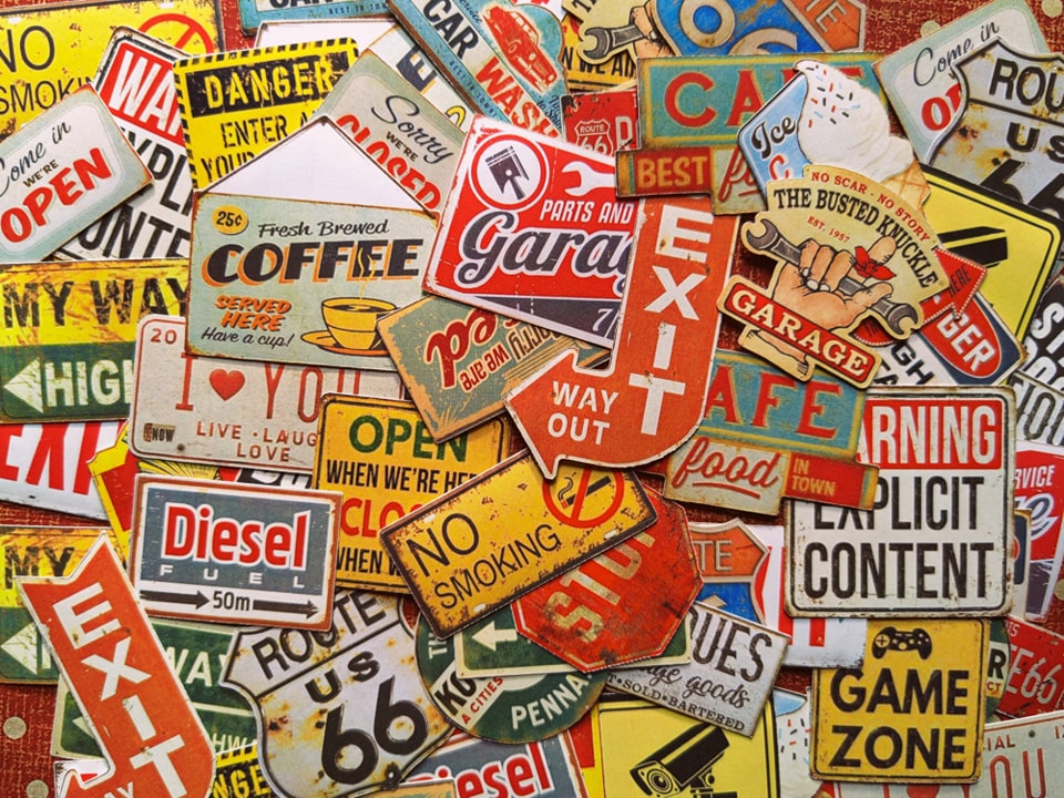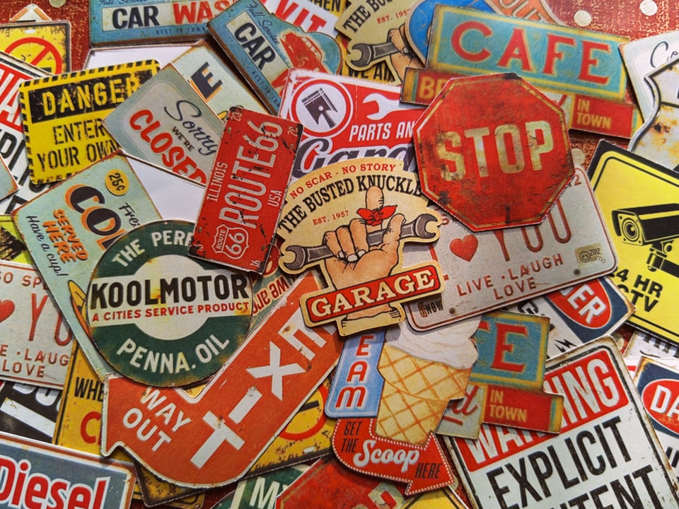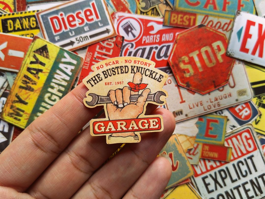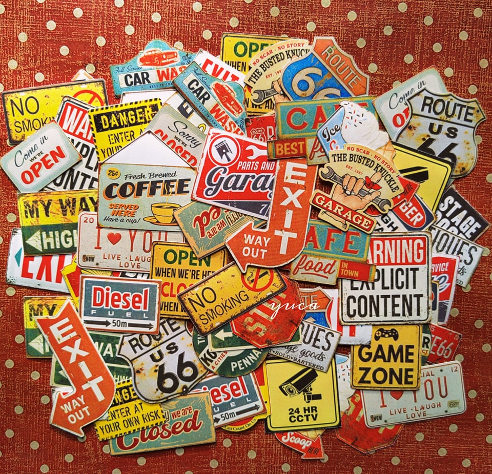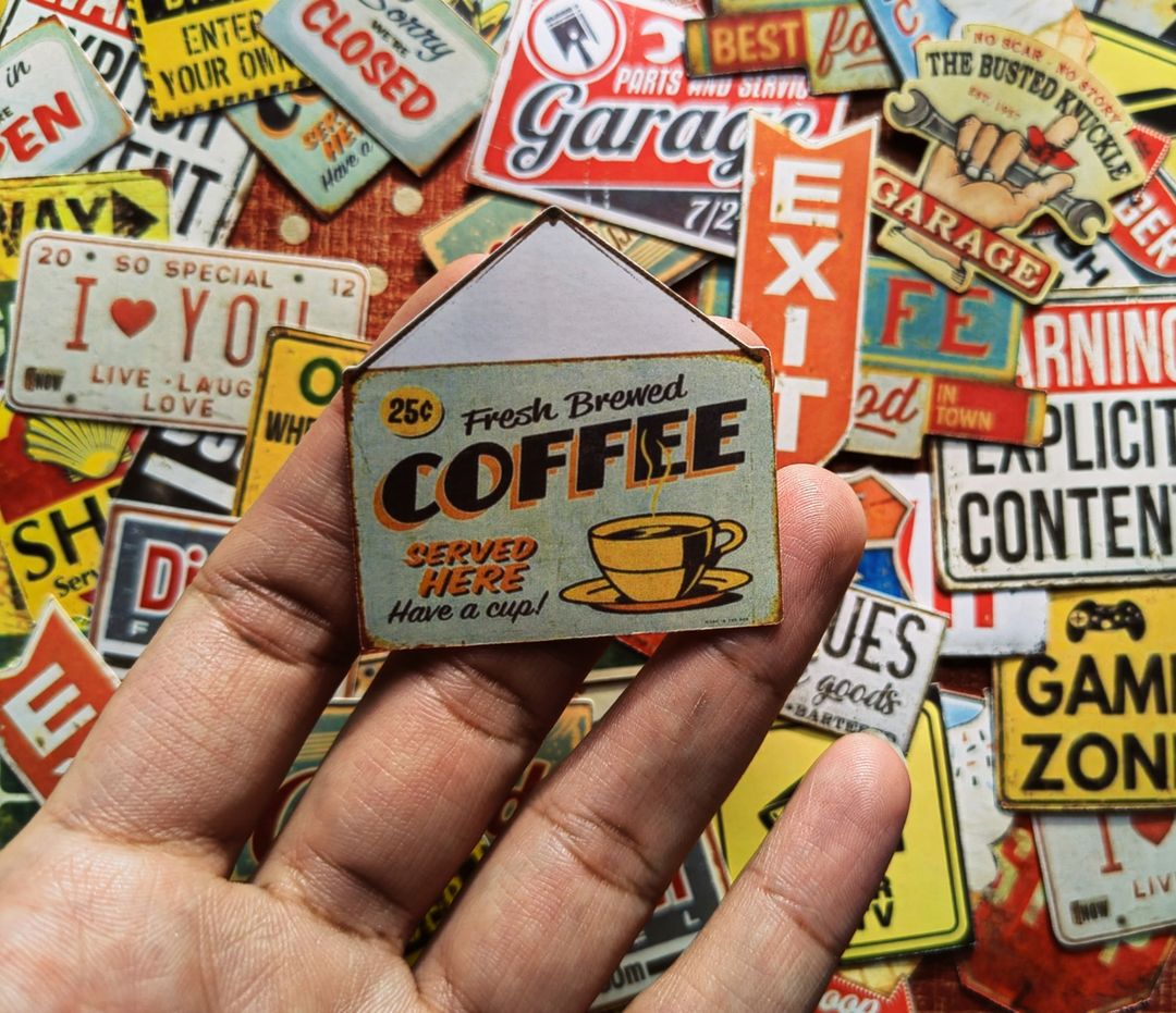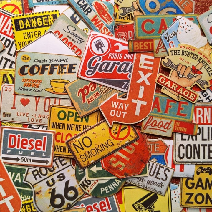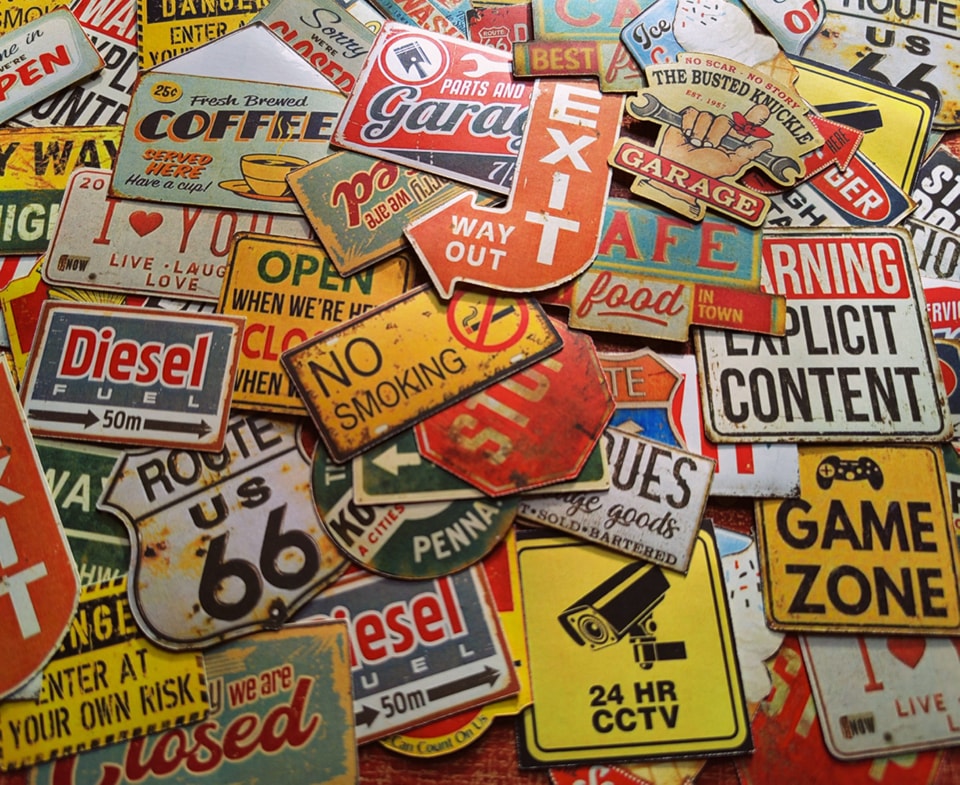 مجموعة ستيكر لافتات قديمه ٣٠ قطعه في الباك بجوده عاليه وألوان قويه