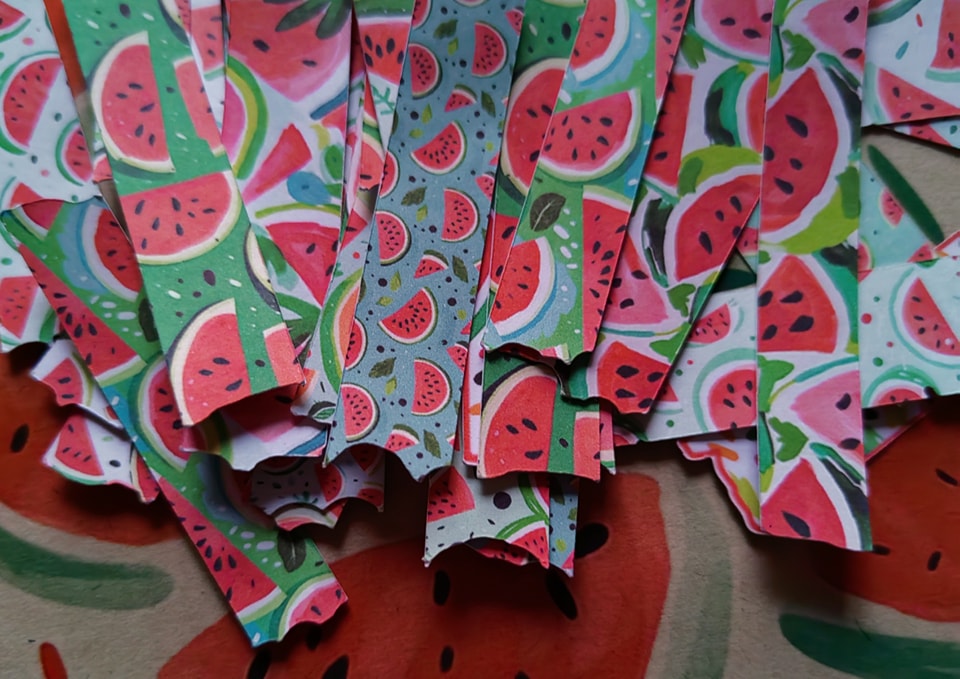 بوكس واشي تيب بطيخ، قطع ستيكر بأحجام مختلفه شكل الواشي تيب ومقصوصه بطريقة تقطيع التيب.