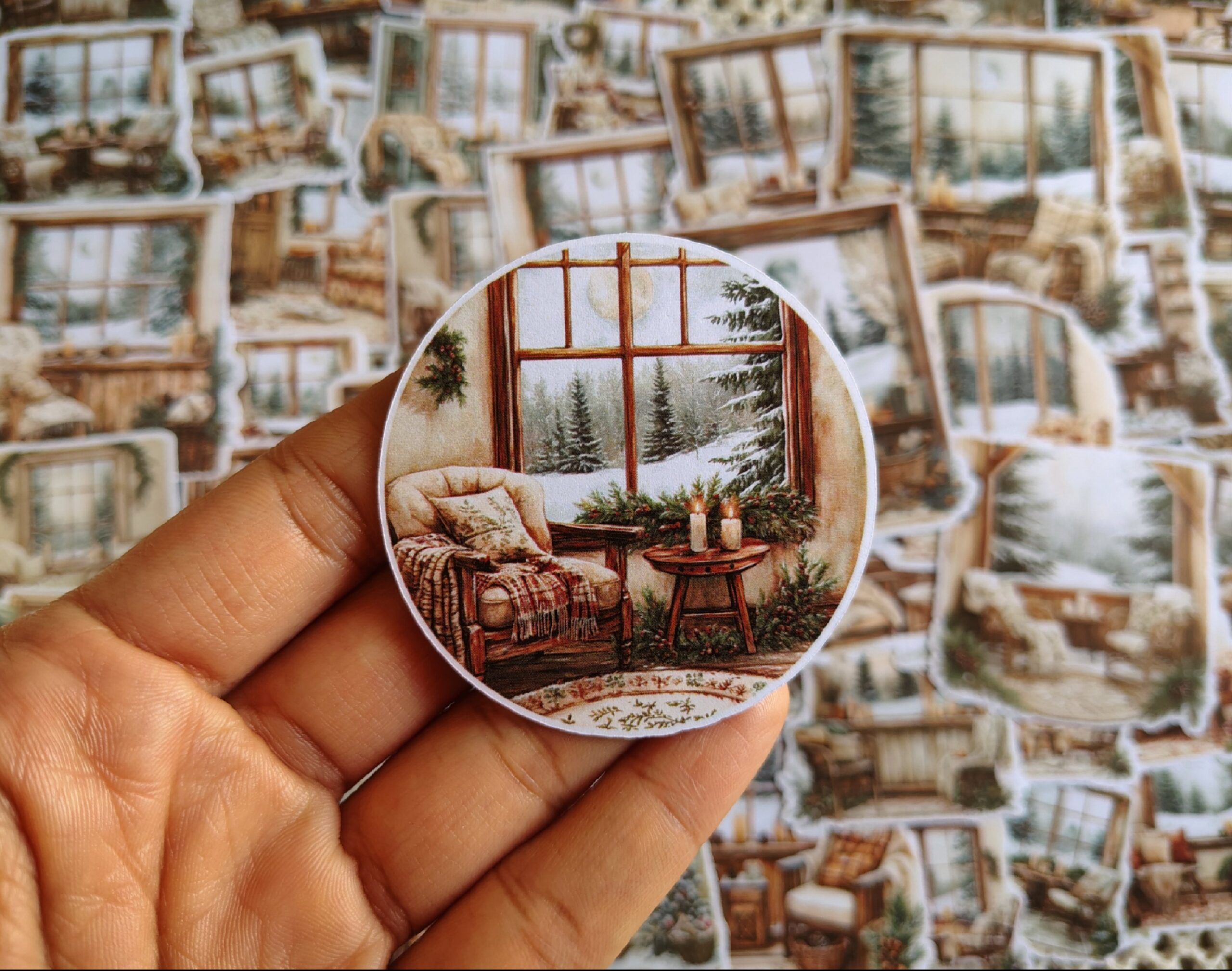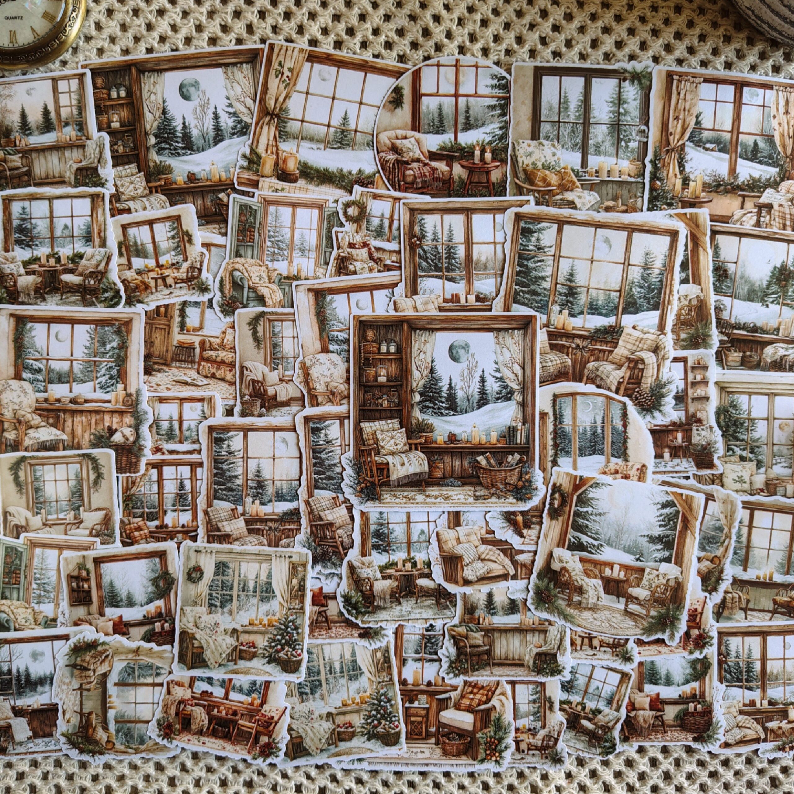 مجموعة نوافذ شتويه تطل علي مناظر رائعه في بيت هادئ