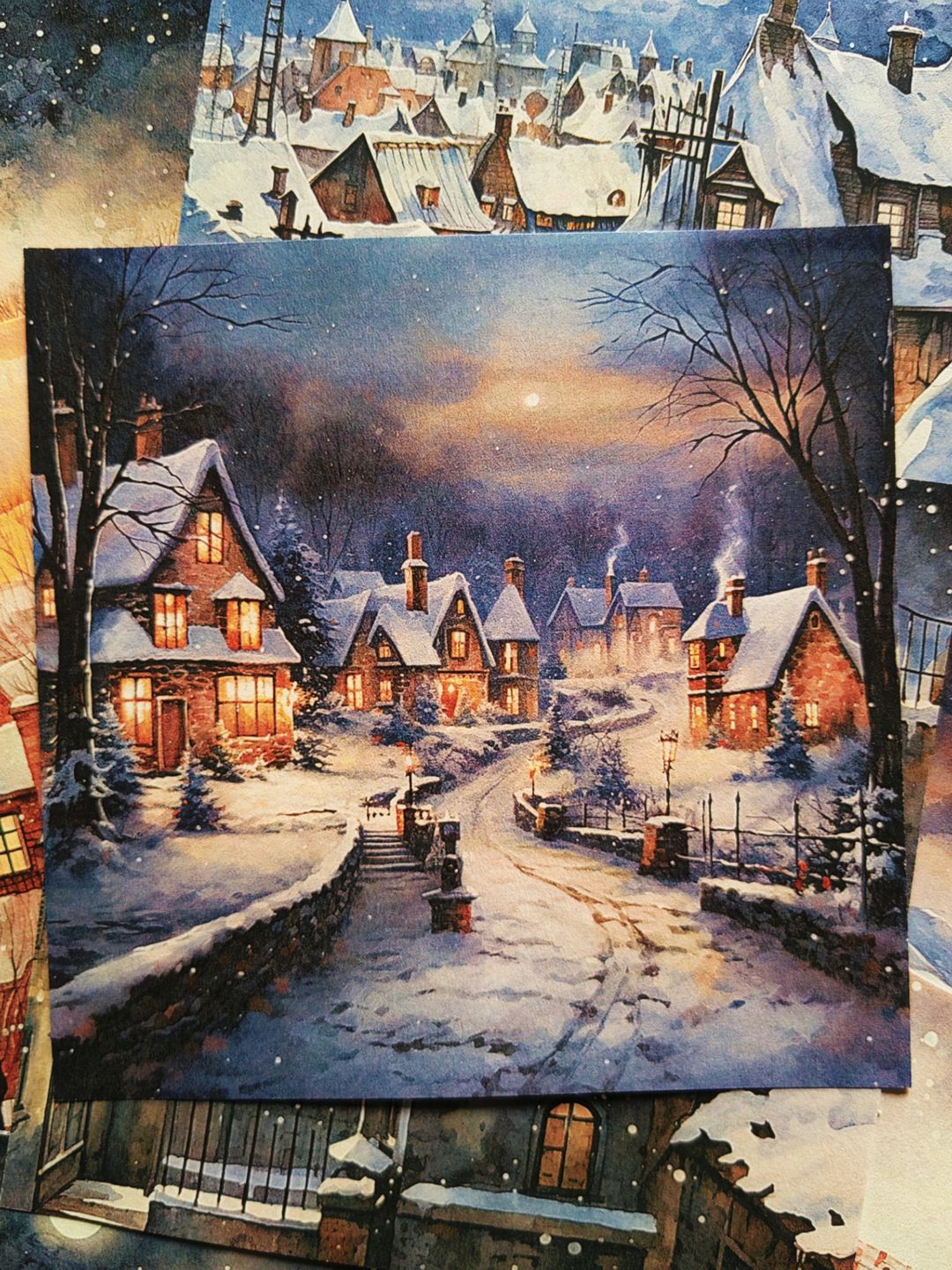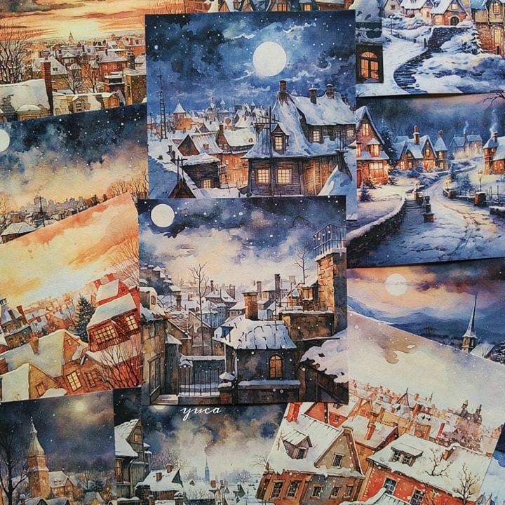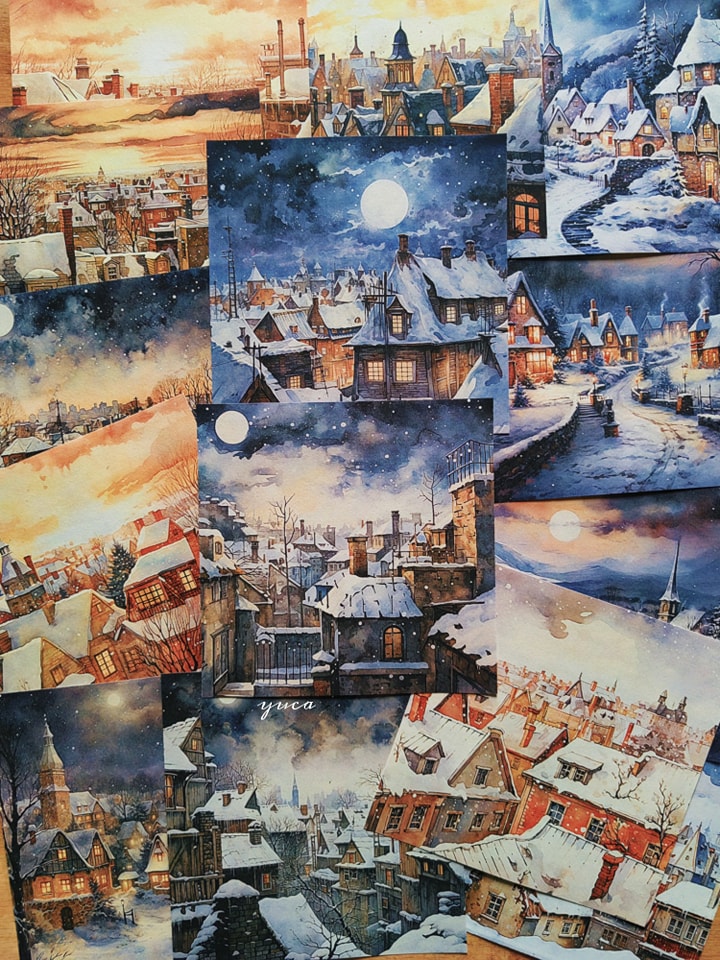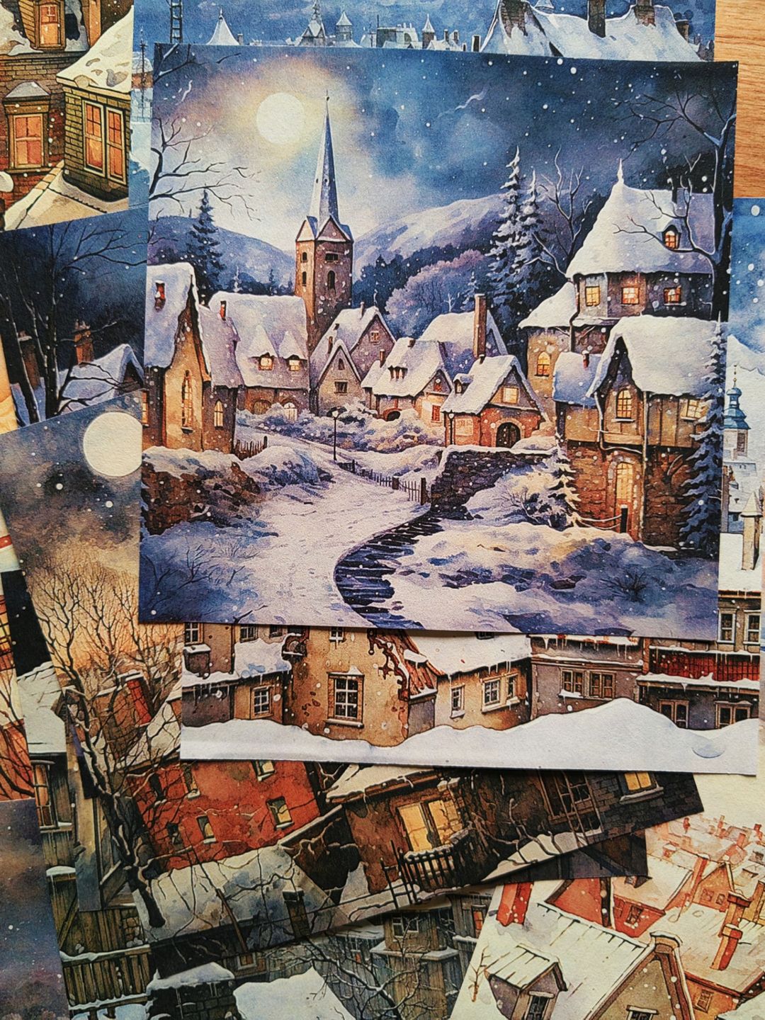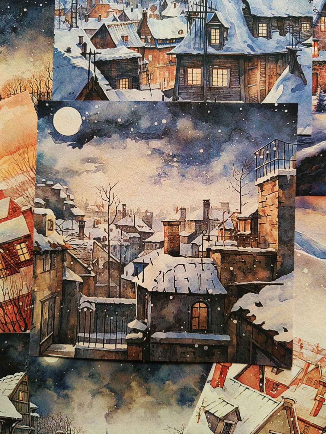 مجموعة ورقيات بثيم بيوت شتويه وقمر.